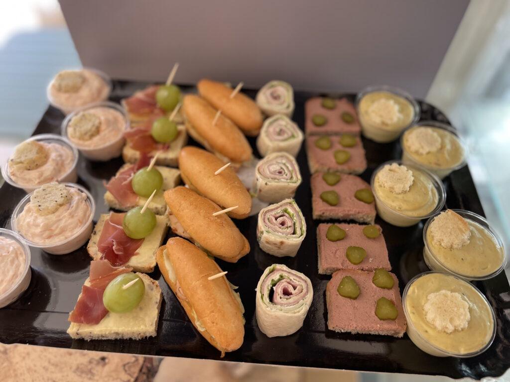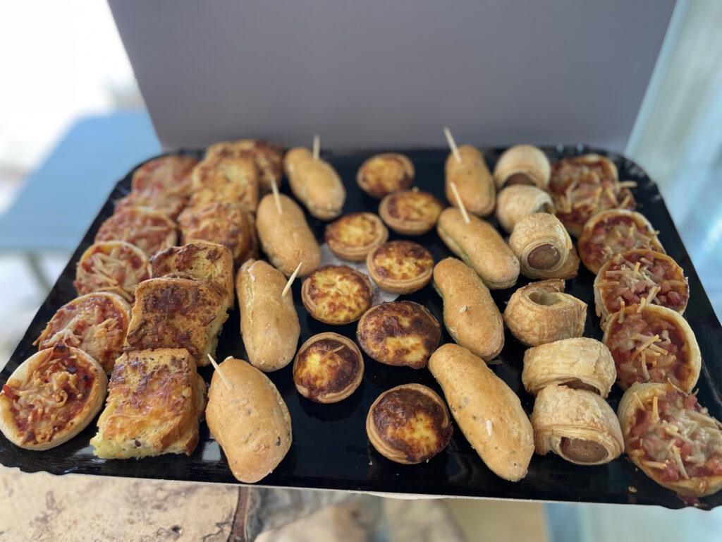 - 8 mini quiches (lorraine, légumes ou oignons) et de 6 feuilletés d’une variété au choix (fromage, lardon fromage, saucisse, olives, saumon, crème curry, chèvre).